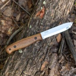 The carbon steel also offers superior corrosion resistance and stands up better against rust while providing more flexibility than other materials. The blade of the camping knife BS2FT CSH should be washed well and wiped dry after use. This will protect your knife from corrosion.