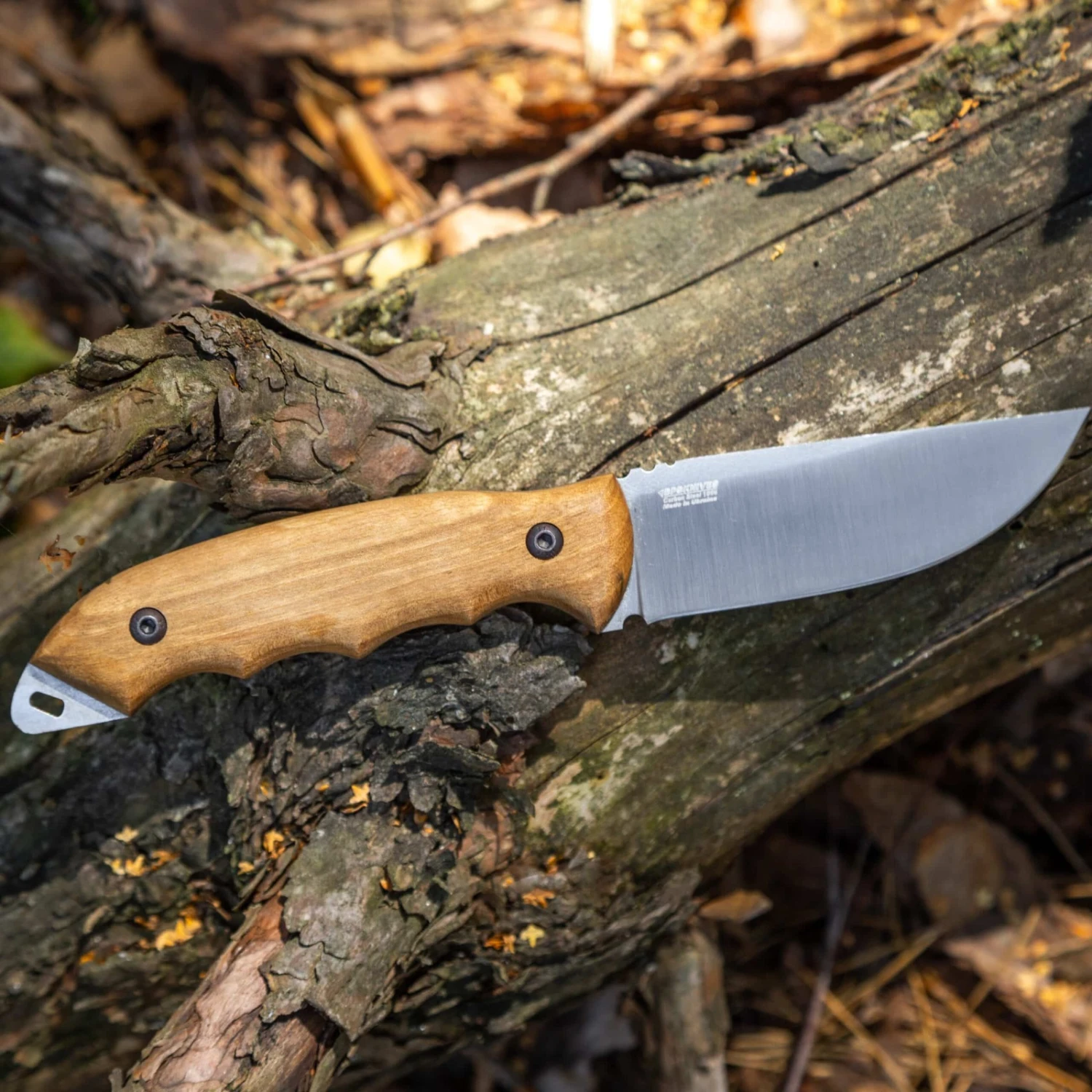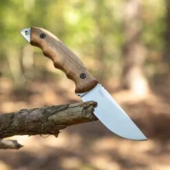 The knife’s comfortable grip is made from non-slip walnut wood and sealed with Danish oil. This provides a secure hold, even in wet or slippery conditions. The ergonomic handle makes it easy to use the knife for extended periods of time without experiencing hand fatigue or discomfort.