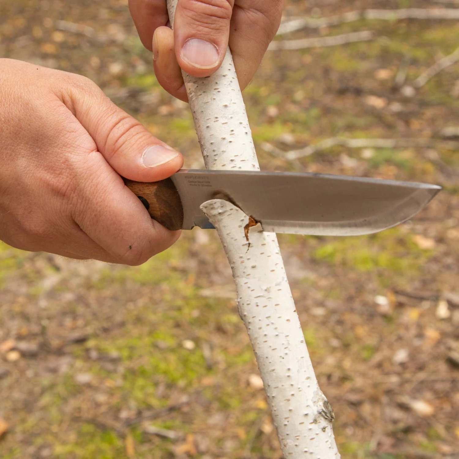 The blade is made of 1066 carbon steel, hardened to 57-59 HRC. Sharpening type – Scandi grind – makes it easy to work with wood of any level of hardness and at different temperatures.