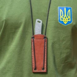 The handle features a textured design, ensuring a comfortable grip even in wet or slippery conditions. The Techno Bee pocket EDC knife includes a lanyard hole, making it easy to attach to your gear or wear around your neck. It comes with a sturdy genuine leather sheath that adds a stylish touch.