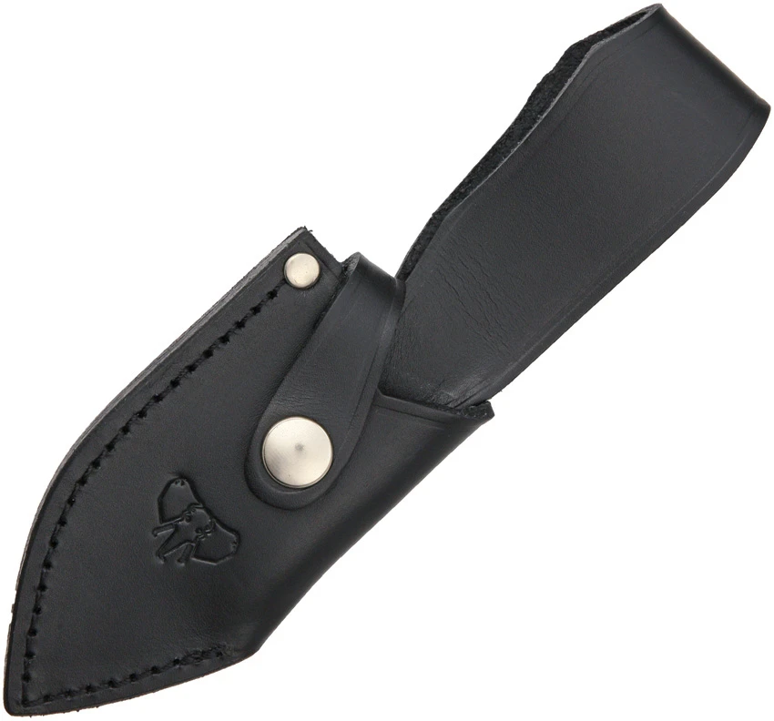 An extremely versatile, mini drop point modern skinning knife with black micarta Handle. Finish of both knife and sheath is excellent.