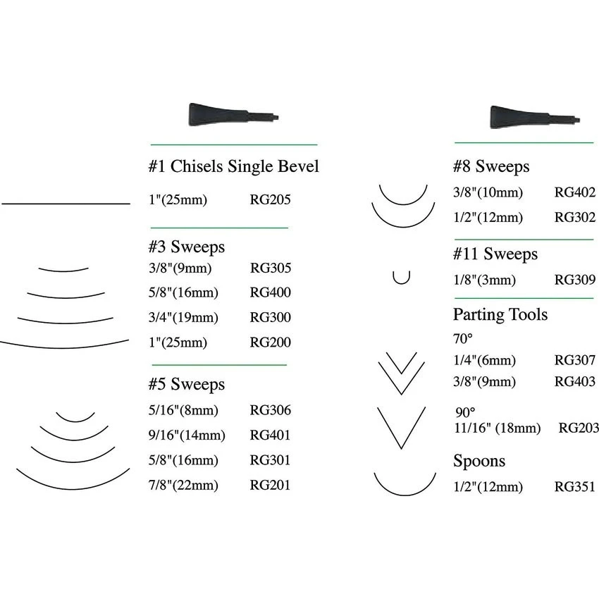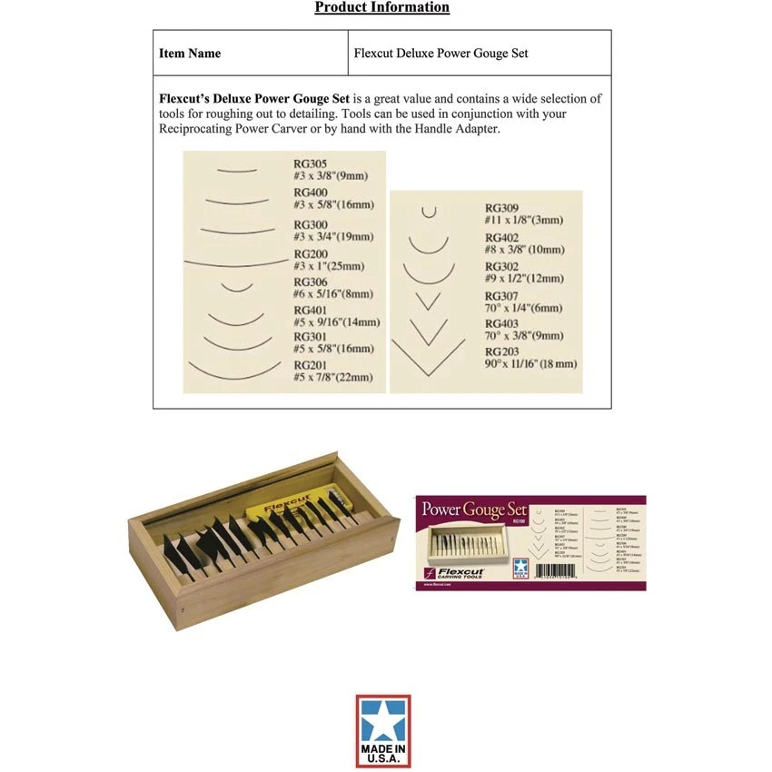 The results will amaze you. Even professional carvers are delighted with the speed and ease of carving with Flexcut blades–in fact, it may turn out that the only thing your power carver needed to become a good tool was a good set of blades like these. The set comes in a fitted wooden box. As with all Flexcut’s hand tools, these blades arrive razor sharp.