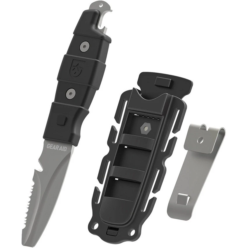 - Titanium-coated 3” blade is armed with a line cutter and straight and serrated edges to cut rope, fishing line, and food