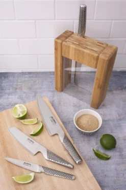 This safe and simple to use sharpener will ensure your valuable knives remain extremely sharp and ready for anything in the kitchen. Although designed for GLOBAL knives, this sharpener can be used for any knife brand with a 15-degree angle, which is a common angle for Japanese knives. Replacement wheels are available to purchase separately as the ceramic wheels will wear out after time – their life expectancy will vary according to frequency of use.