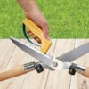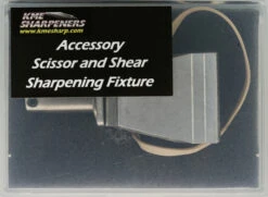 Simply clamp this fixture into your KME knife sharpener jaws then secure your scissor in the fixture. Colour your bevel with the Sharpie marker and adjust the angle as usual. For more detailed instructions on how to use the scissor and shear fixture, please watch the KME instruction video on the KME web site.