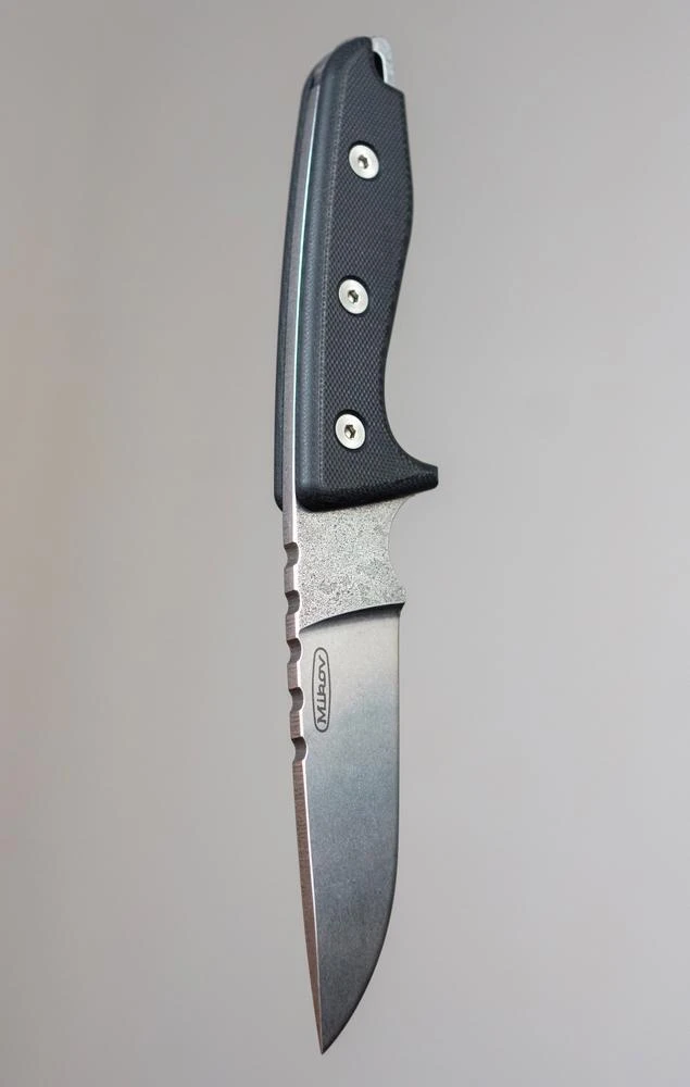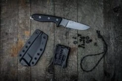 The Mikov Patron Fixed Blade Knife 726-BM-9 is a modern survival/bushcraft knife and features a premium Böhler N690 stainless steel blade with stonewash finish, rugged black G10 handle scales, sturdy kydex sheath, and secure Tek-Lok belt clip. Paracord is included for multiple wearing options. With a modern, robust design, this knife is ideal for survival, bushcrafting, camping, food preparation, and urban use.