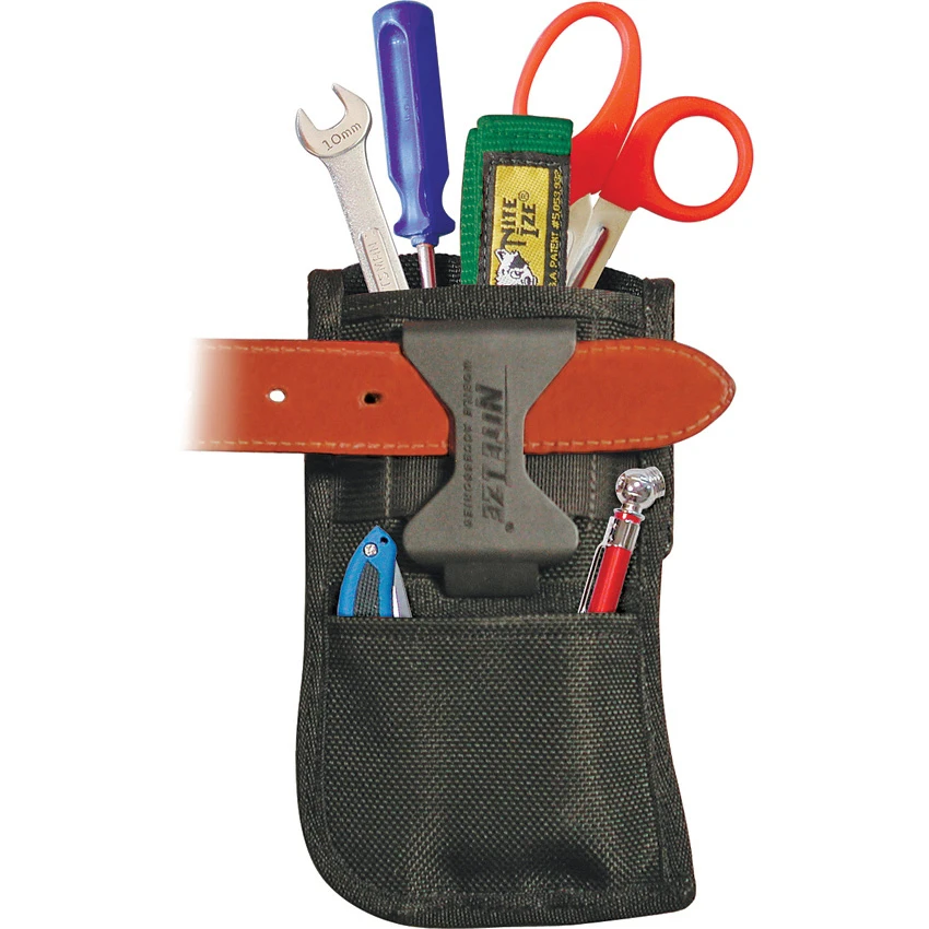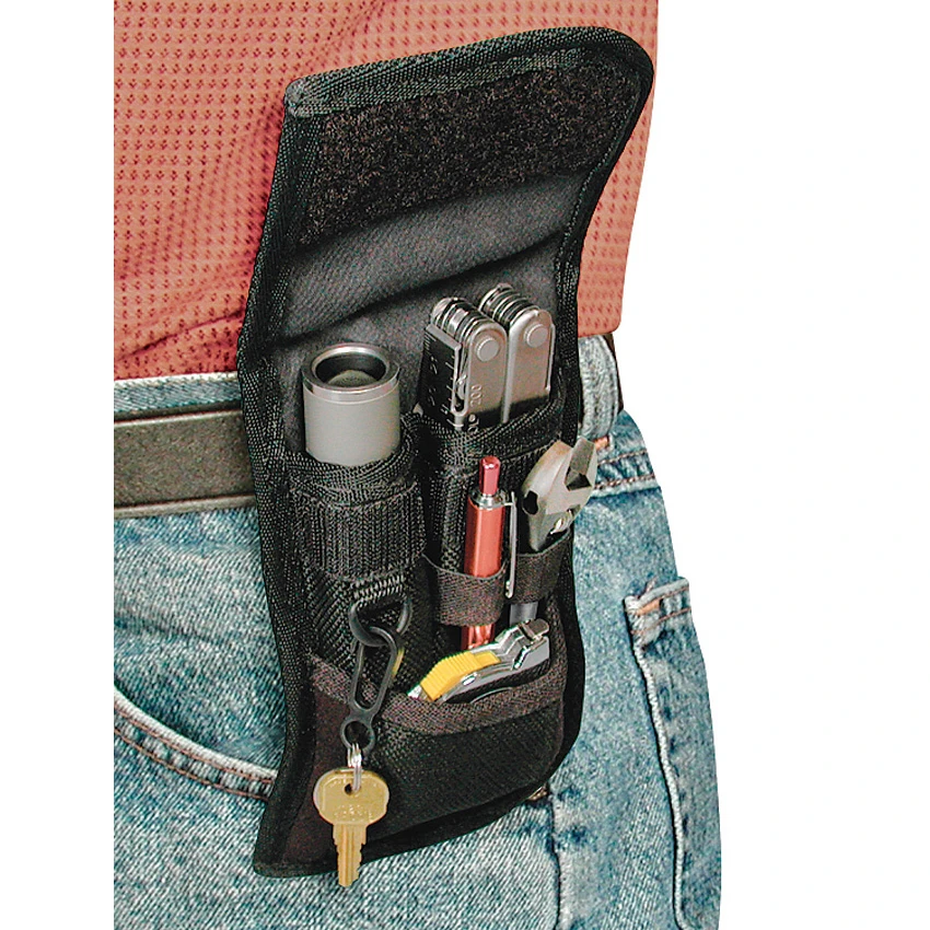 Made of durable, weather-resistant materials and backed with a strong, secure clip, the Clip Pock-Its XL Utility Holster is the perfect choice for people who want to keep their most-used tools and personal essentials all in one convenient place. Designed with multiple interior pockets that hold pens, credit cards, and IDs, the Clip Pock-Its XL also has front pockets that fit full size flashlights and multi-tools of almost every make, as well as an expandable pocket for accessories, keys, and batteries. Its super-strong “over and under” clip attaches securely to belts and waistbands.
