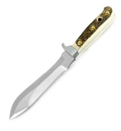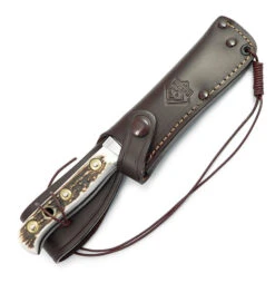The Trifecta from the American PUMA XP series is a multifunctional hunting pocket knife with three different blades made of coated 420 steel, hardened to 55-57 HRC. The user has an 8 cm droppoint blade, a sharp gutting blade with “gut hook” and a bone saw at his disposal.