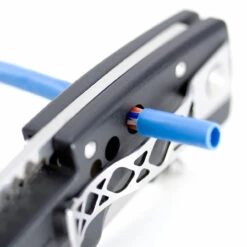 Get ‘charged up’ with the Kilowatt, the first working theme pocket knife designed for the electrician, homeowner, contractor, or anyone who might need to strip wire in a pinch. Three separate systems address wire from fine multi strand all the way up to cable. There is a stripper bar for wire sizes of 10-22, an adjustable spring-loaded UTP/wire stripper in the back, and just in case, a patent pending hole stripper that uses the main blade. Schematic grips, hi voltage tower clip, insulator thumb stud, and a blade with receptacle engraving are signatures that make this a very unique liner lock knife. Without the Kilowatt folding knife… you just might end up in the dark!