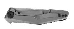 - CPM 20CV powdered metallurgy tool steel with high volume of vanadium carbides for exceptional wear resistance and long-lasting edge; two-tone, satin-and-stonewashed blade finish