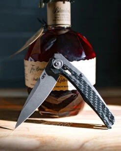 - Partially machined carbon fiber handle looks sleek and feels comfortable in-hand