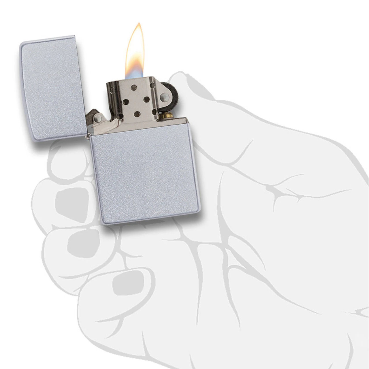 Zippo’s Classic Satin Chrome lighter has a refined look that makes this lighter a classic gift. This lighter has a smooth finish on all sides and shimmers with the silky texture of luxurious satin. Fill with lighter fluid. PRODUCT IS NOT SHIPPED WITH FUEL!